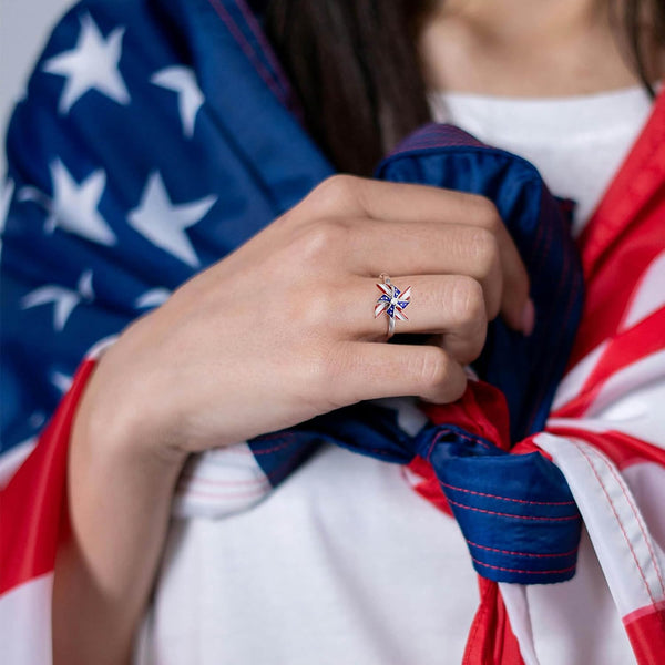 Each ring is meticulously crafted to highlight the beauty of the American flag, making it a standout piece whether worn alone or stacked with other rings. The diameter of the spinner ring is customizable, ensuring a perfect fit for any finger. Wear it proudly on holidays like Independence Day or Memorial Day, or simply to express your allegiance every day.