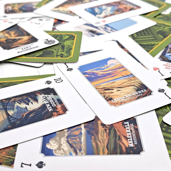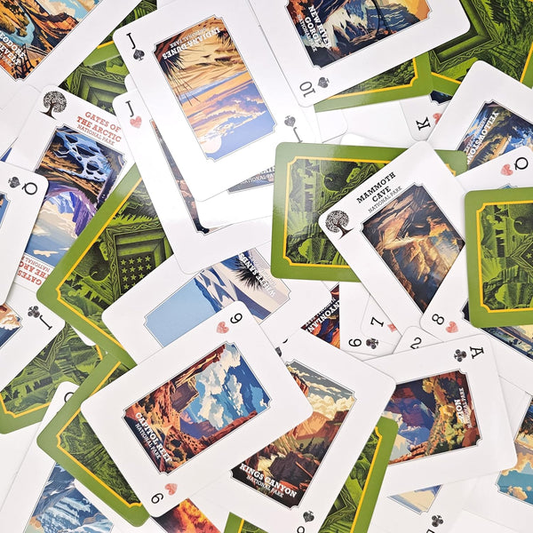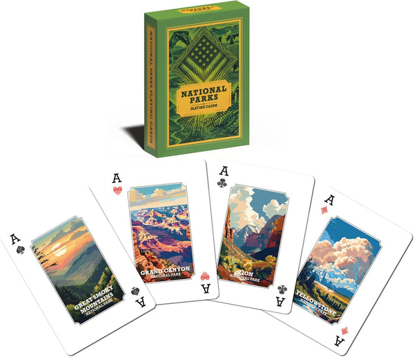 USA National Parks Playing Cards featuring 54 iconic parks with stunning hand-illustrated artwork inspired by America’s landscapes and wildlife. Lightweight and portable, perfect for travel, camping, road trips, and outdoor fun. Educational, inspiring, and great for all ages. A unique gift for hikers, campers, travelers, and National Park lovers.