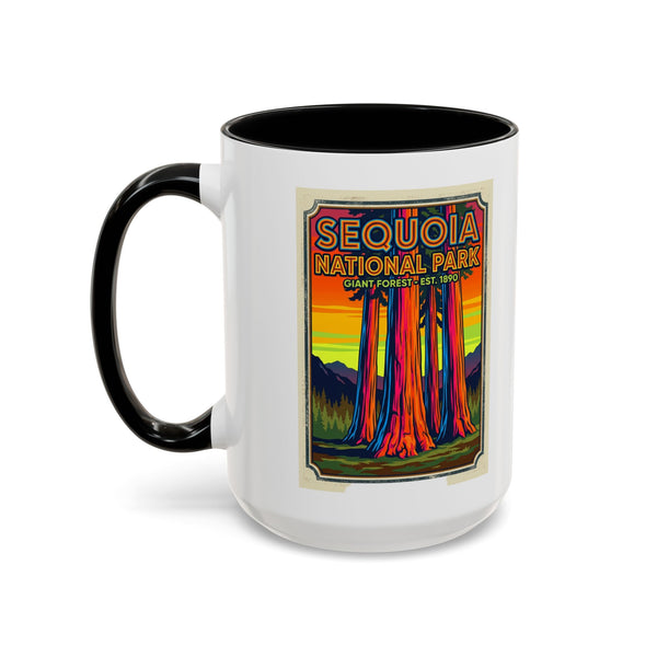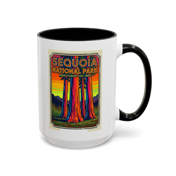 Sequoia National Park Coffee Mug – Enjoy your favorite beverage while celebrating the beauty of Sequoia National Park. Featuring vibrant artwork of towering sequoia trees, mountains, and wildlife in a colorful watercolor style, this mug is perfect for coffee, tea, or hot chocolate. Durable ceramic, dishwasher and microwave safe. A great gift for hikers, campers, National Park enthusiasts, and nature lovers.