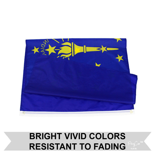 Buy The Official Indiana State Flag featuring a golden torch surrounded by 19 stars representing Indiana's place as the 19th state to join the Union. The field of blue symbolizes loyalty and devotion, while the stars and torch symbolize liberty and enlightenment. Show your pride for the Hoosier state with this Official Indiana State Flag.