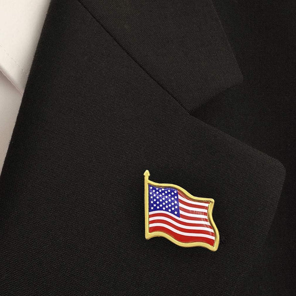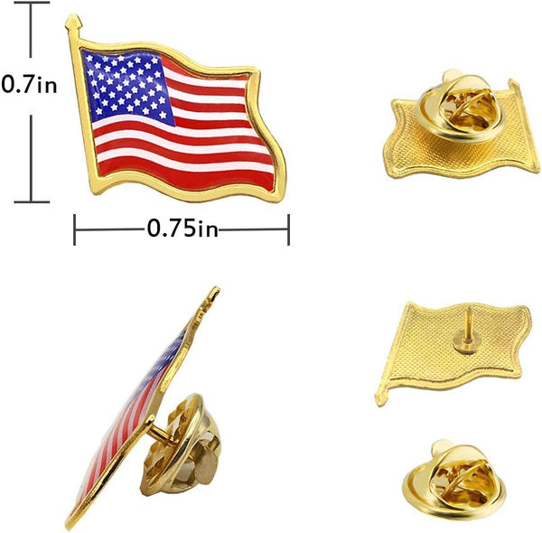 50 USA Waving Flag Pins. Each size is 0.75*0.7*0.4 inch(L*W*H), with an individual package.