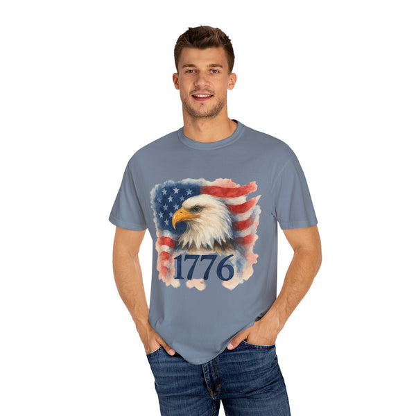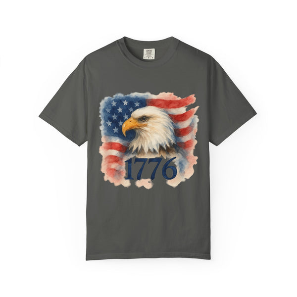 Celebrate a milestone with a soft, lived-in tee that honors the spirit of America. This relaxed-fit garment-dyed shirt carries a vintage-inspired flag graphic and bold “American Flag w/ Bald Eagle” print across the chest.
