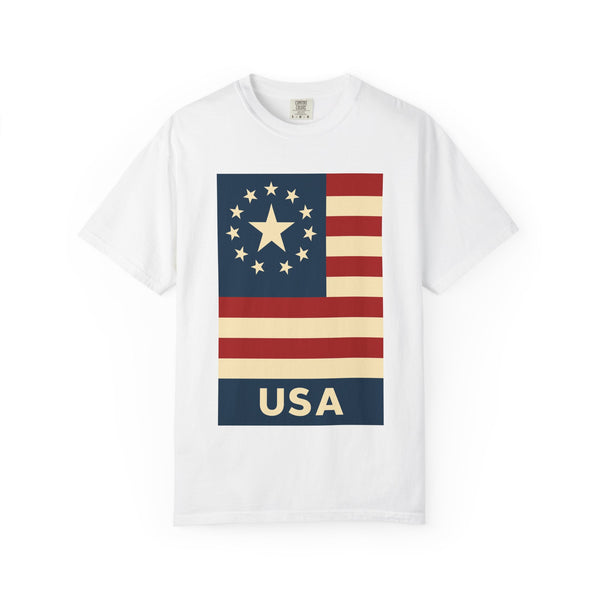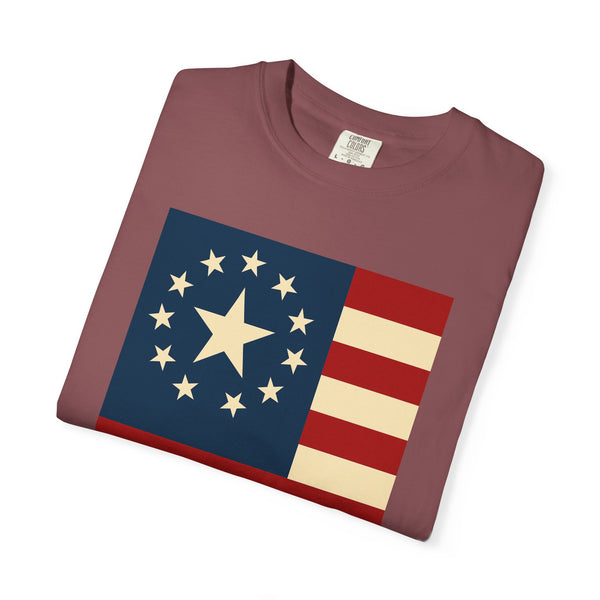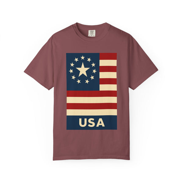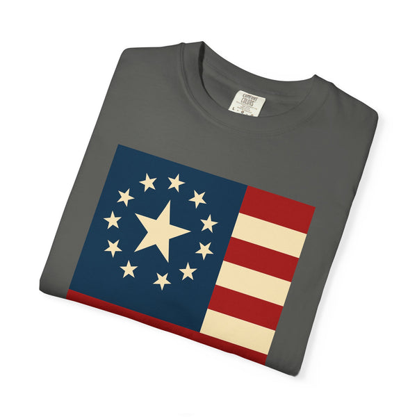Celebrate a milestone with a soft, lived-in tee that honors the spirit of America. This relaxed-fit garment-dyed shirt carries a vintage-inspired flag graphic Modern American Flag USA T-Shirt