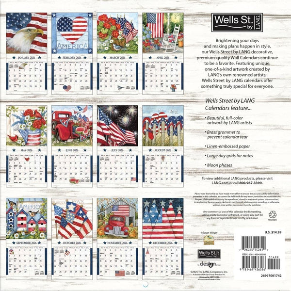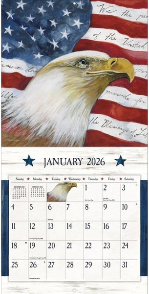 12 full-color images (January - December 2026) Artwork by nationally recognized artists Elegant linen-embossed paper stock Brass hanging grommet to prevent calendar from tearing Size: 12"w x 24"h