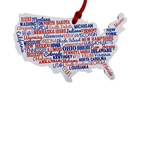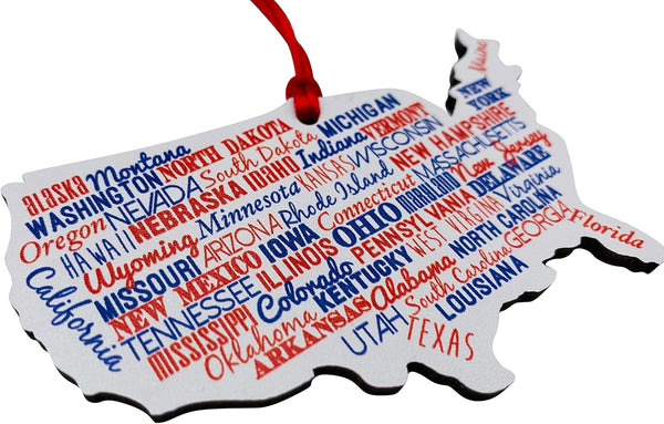 - NOTE: State names are not location accurate on the ornament. They are placed randomly on the ornament for proper use of space not geography
